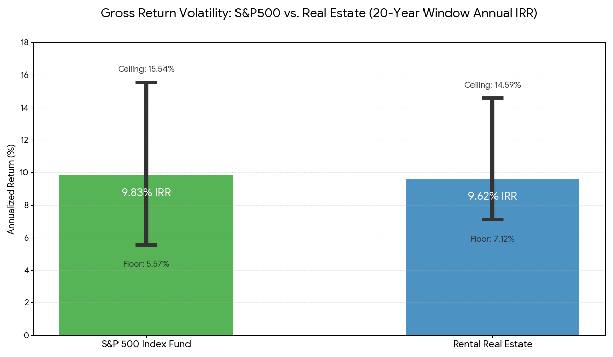 While the S&P 500 return is slightly higher on average, real estate offers unique structural advantages that "pure" paper assets don't: